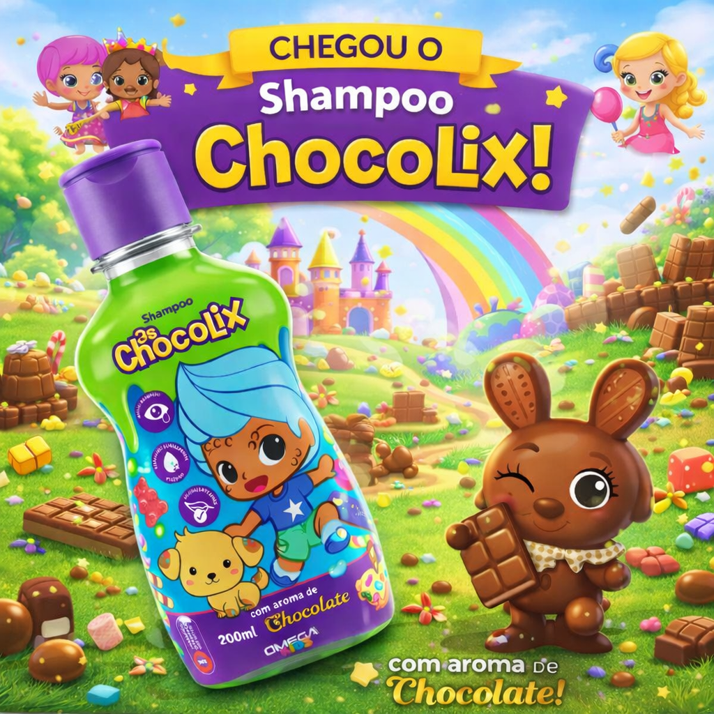 O Shampoo Chocolix Chocolate 200ml – Omega Kids foi desenvolvido para transformar a hora do banho em um momento divertido, agradável e cheio de carinho. Inspirado no universo encantador de Os Chocolix , ele traz um cheirinho delicioso de chocolate que conquista as crianças e torna o cuidado com os cabelos muito mais prazeroso.
